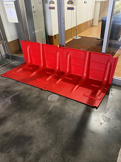 止水板は浸水の可能性がある場合の第一選択と施設の各入口に設置します。